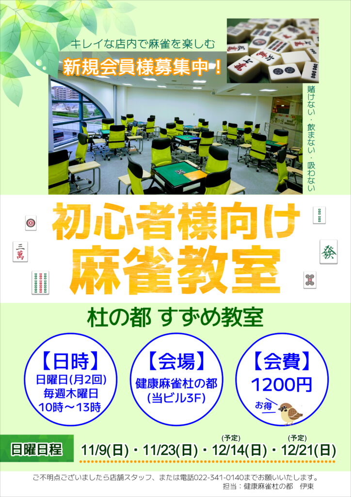 麻雀ってなんだろうと興味を持った方、初めて覚えてみたい方、是非無料体験会にご参加くださいませ♪