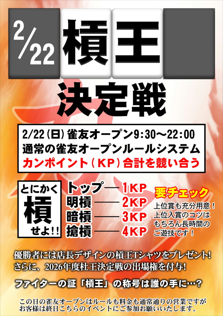 毎週月曜日は、チョンボ・アガリ放棄を無くした《ノーチョンボデー》。安心してご遊戯頂けます。